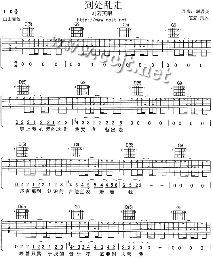 当前位置:琴谱网>吉他弹唱>到处乱走