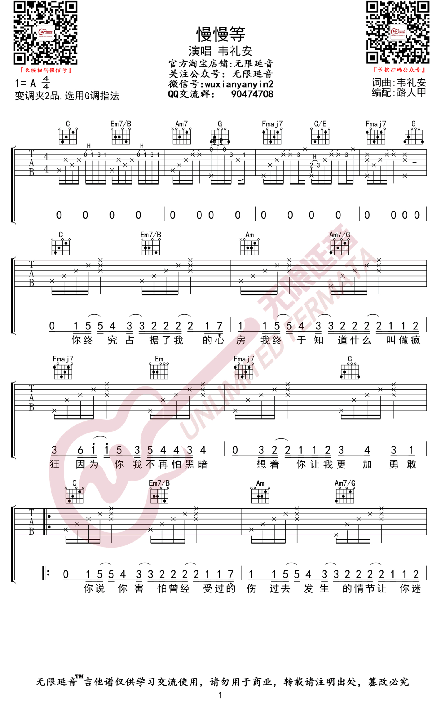慢慢等吉他谱 - 韦礼安 - G调吉他弹唱谱
