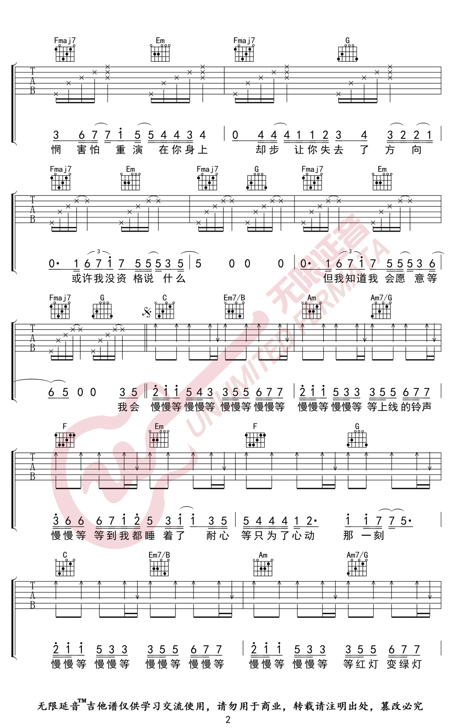 琴谱网为您精心推荐 慢慢等 高清图谱