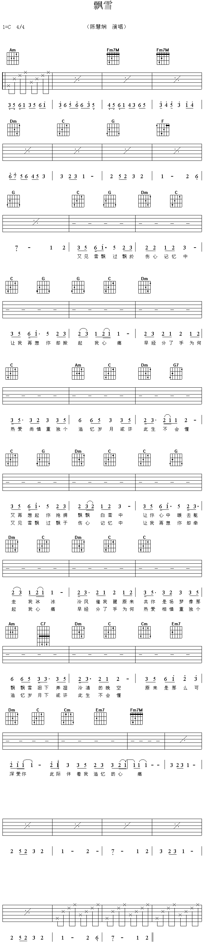 飘雪吉他谱 - 吉他弹唱谱