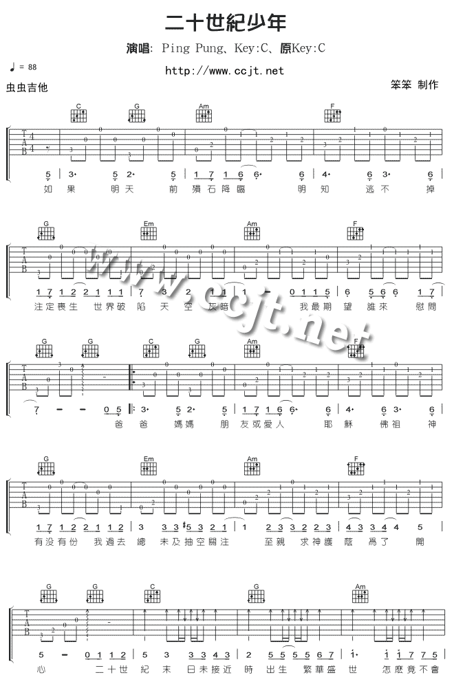 二十世纪少年吉他谱 - Pung - 吉他弹唱谱