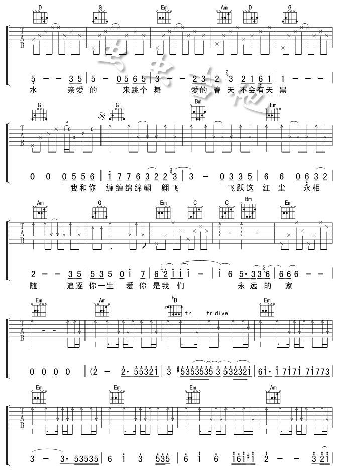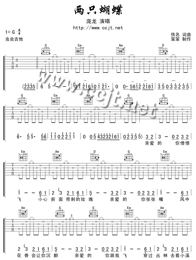 两只蝴蝶吉他谱 - 吉他弹唱谱