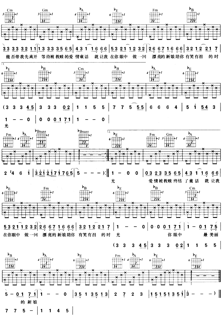美丽的新娘吉他谱 - 吉他弹唱谱