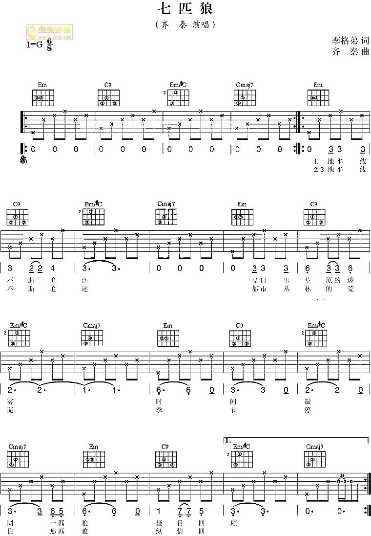 当前位置:琴谱网>吉他弹唱>七匹狼