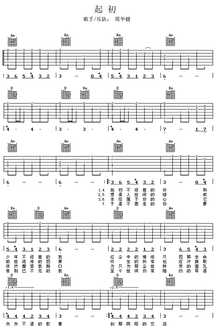 起初吉他谱 - 吉他弹唱谱