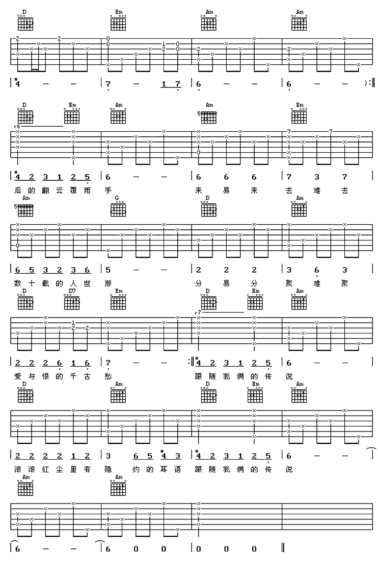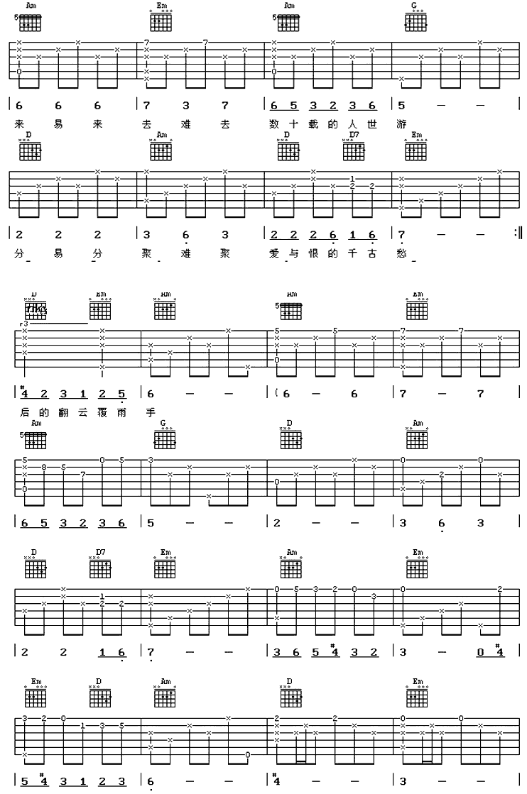 曲谱介绍: 《起初》吉他弹唱谱,共有3张高清图谱。