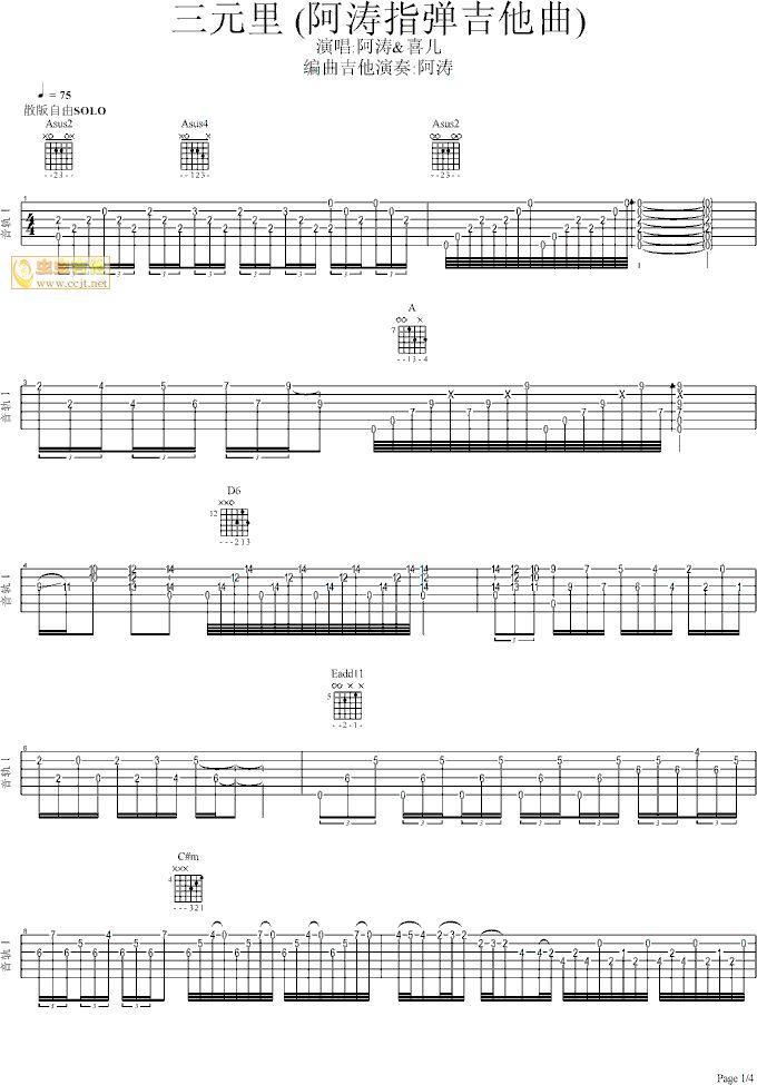 当前位置:琴谱网>吉他弹唱>三元里 阿涛吉他原创歌曲