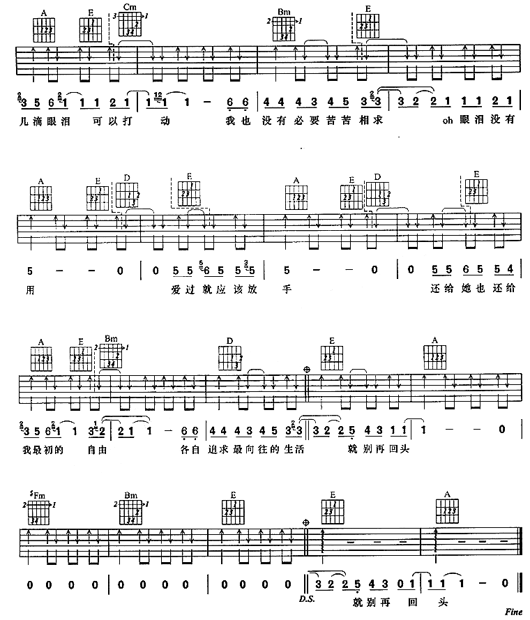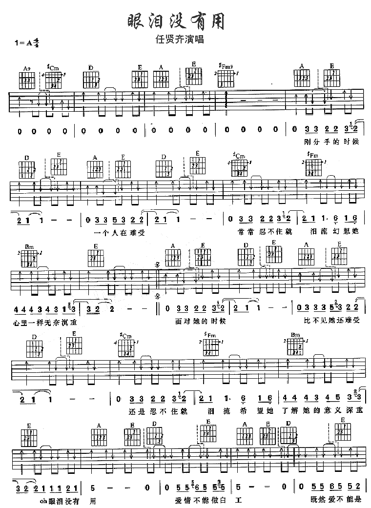眼泪没有用吉他谱 - 吉他弹唱谱
