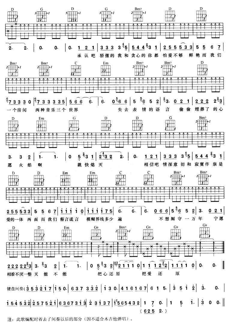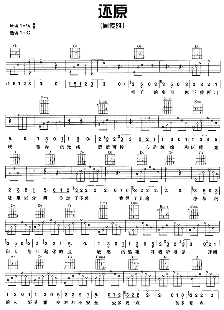 当前位置:琴谱网>吉他弹唱>还原