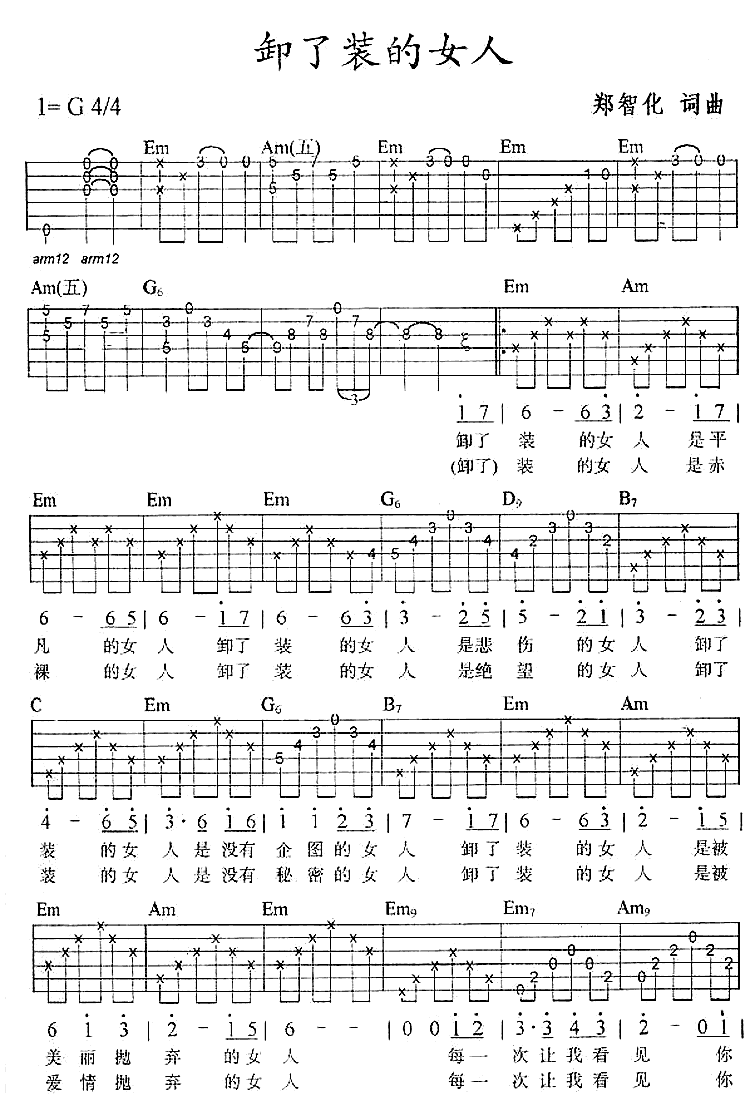 当前位置:琴谱网>吉他弹唱>卸了妆的女人