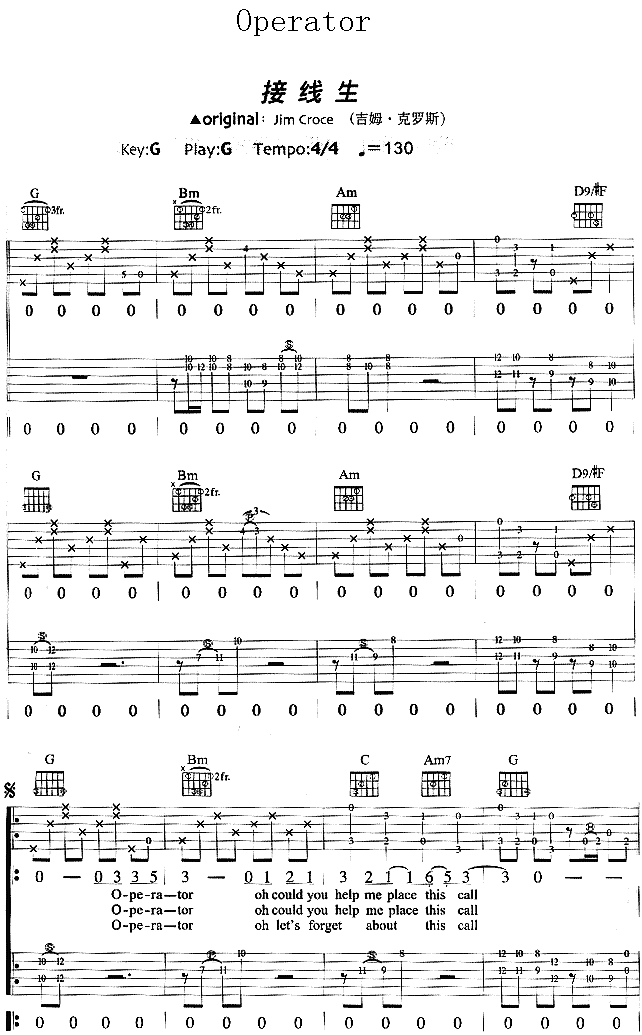 Operator吉他谱 - Croce - 吉他弹唱谱