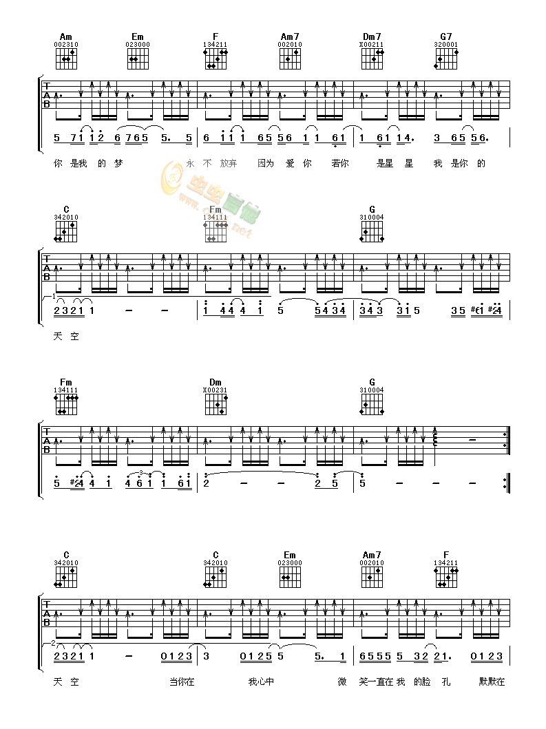 当前位置:琴谱网>吉他弹唱>我是你的天空