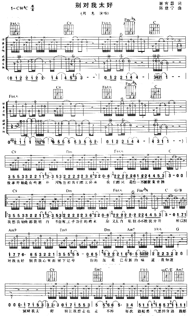 当前位置:琴谱网>吉他弹唱>别对我太好