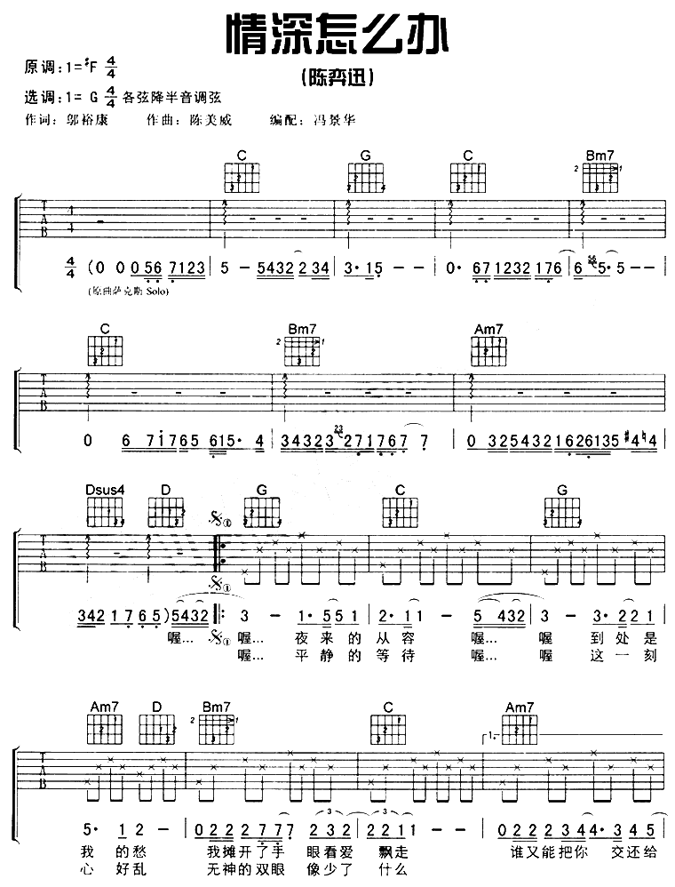 当前位置:琴谱网>吉他弹唱>情深怎么办