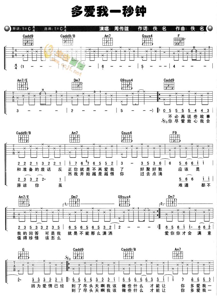 多爱我一秒钟吉他谱 - 吉他弹唱谱