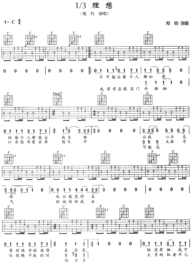 当前位置:琴谱网>吉他弹唱>三分之一理想