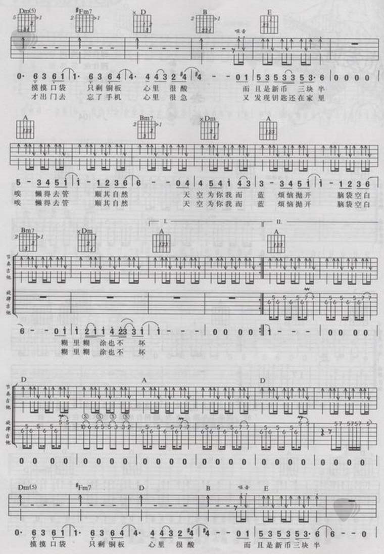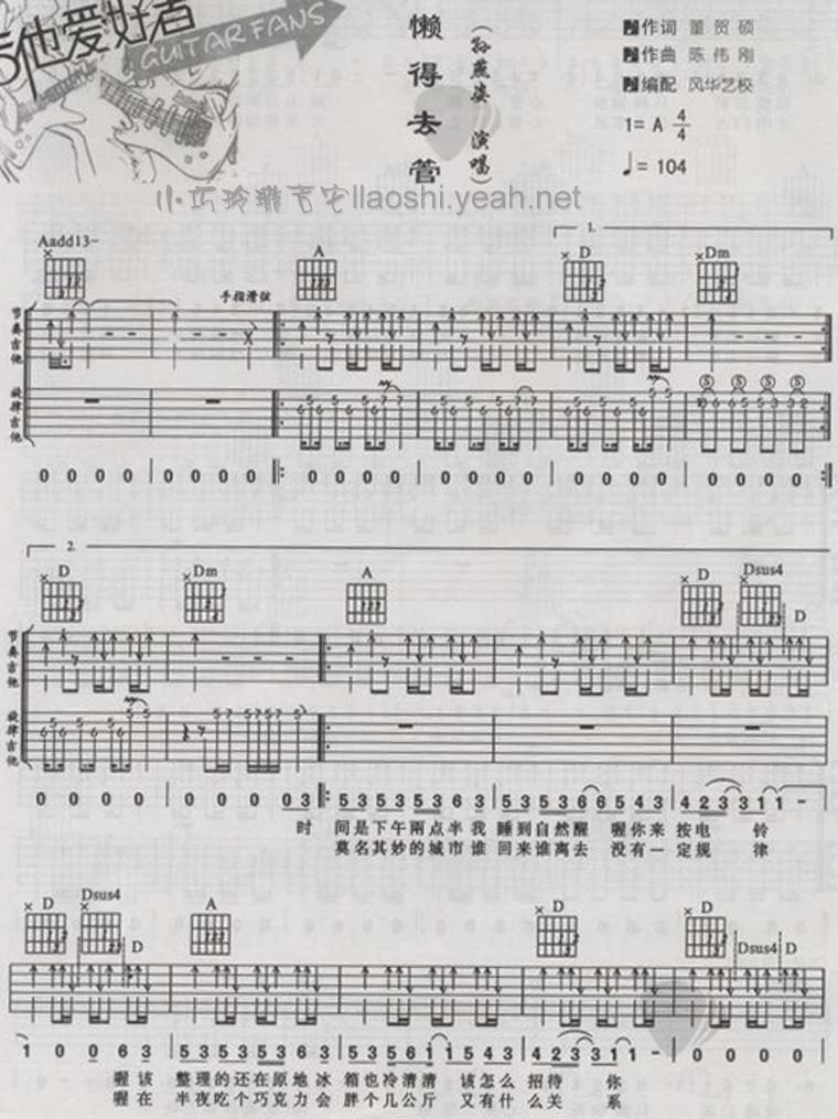 曲谱介绍: 《懒得去管》吉他弹唱谱,共有3张高清图谱。