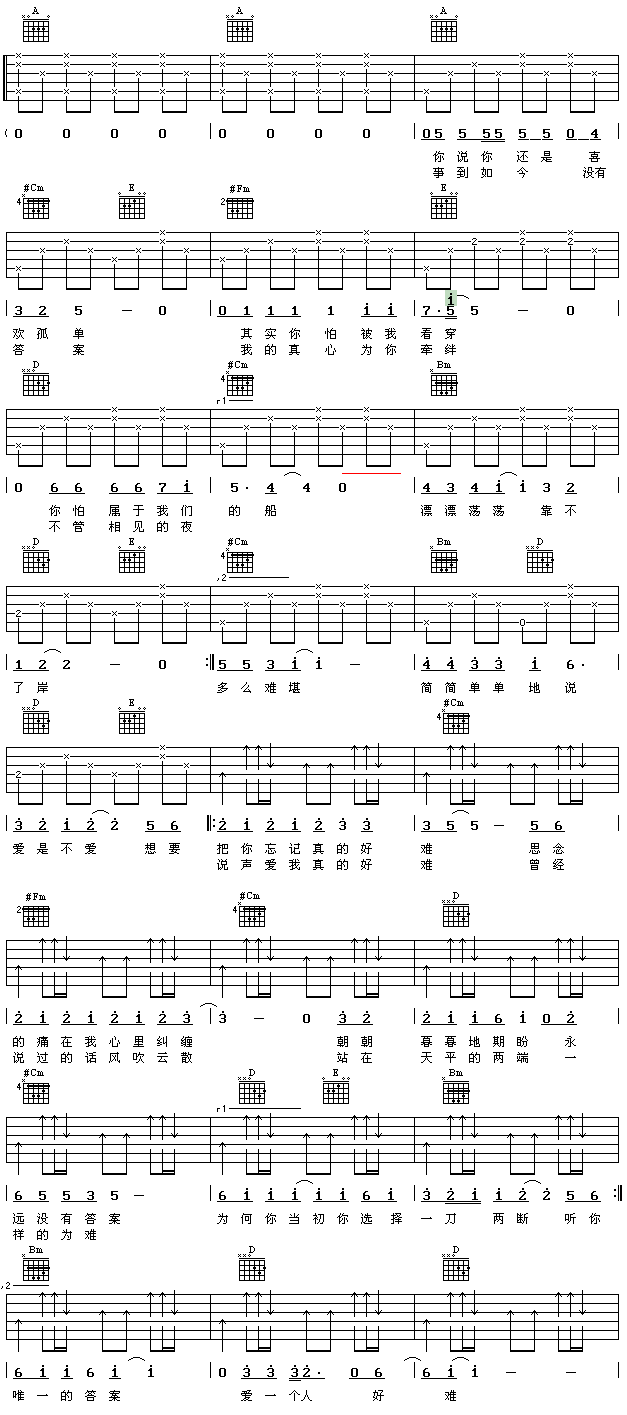 爱一个人好难啊吉他谱 - 吉他弹唱谱