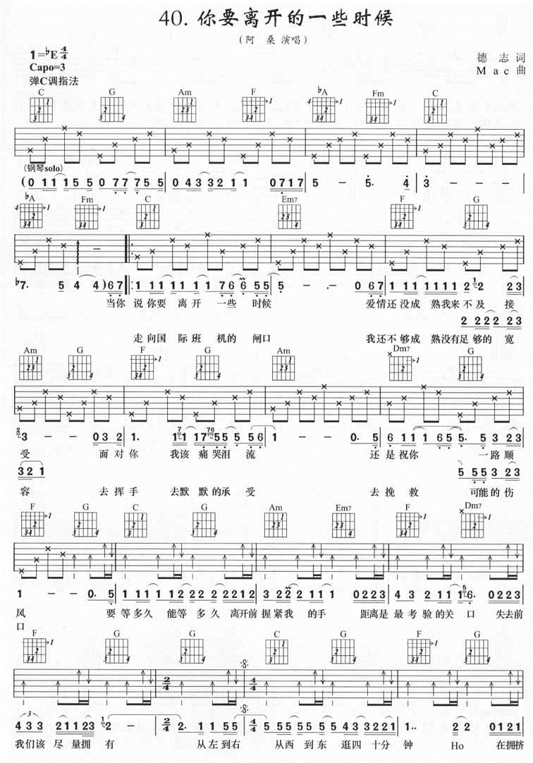 当前位置:琴谱网>吉他弹唱>你要离开的一些时候