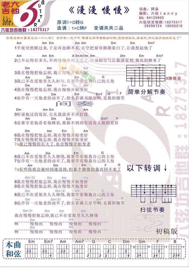漫漫慢慢吉他谱 - 吉他弹唱谱