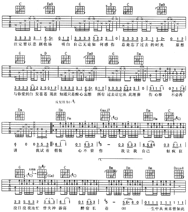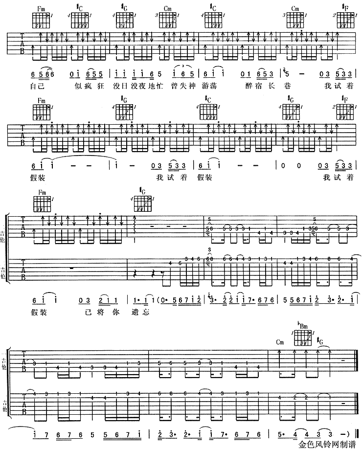 当前位置:琴谱网>吉他弹唱>我试着假装