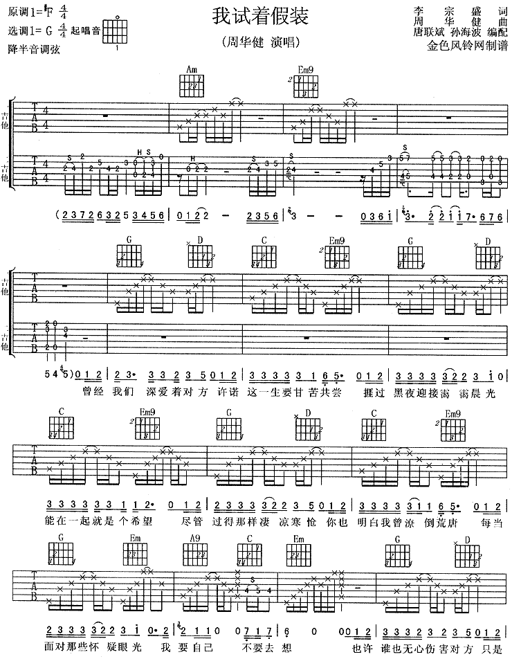 我试着假装吉他谱 - 吉他弹唱谱