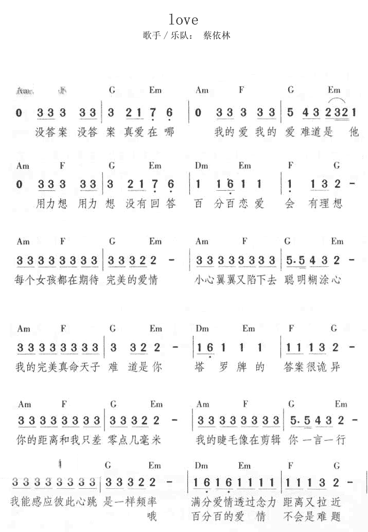 曲谱介绍: 《Love》吉他弹唱谱,共有2张高清图谱,免翻页排版设计。