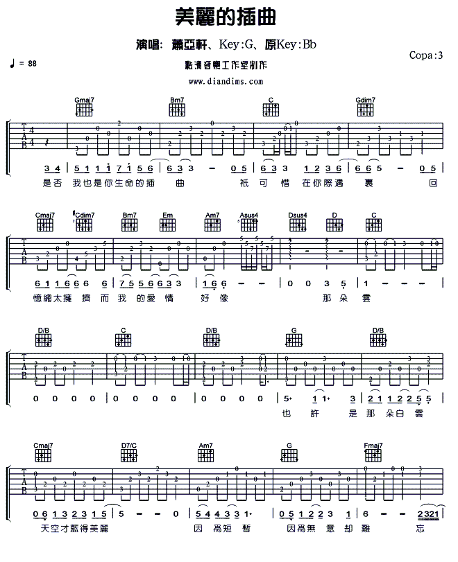 美丽的插曲吉他谱 - 吉他弹唱谱