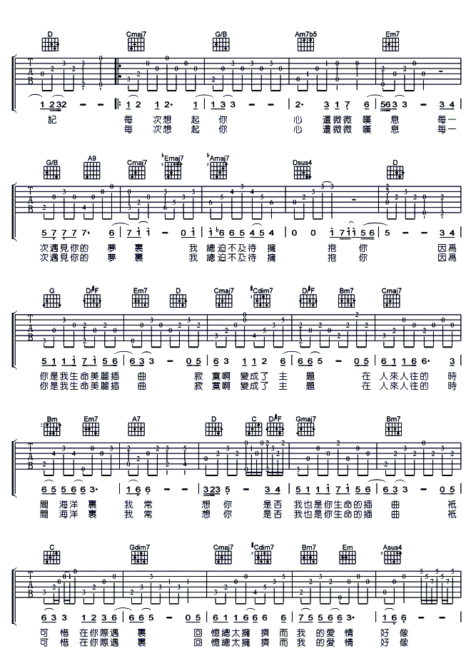 当前位置:琴谱网>吉他弹唱>美丽的插曲