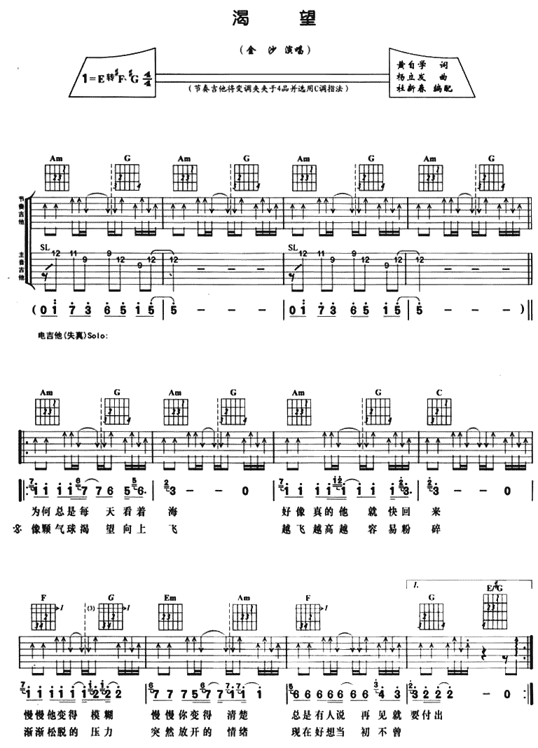 渴望吉他谱 - 吉他弹唱谱