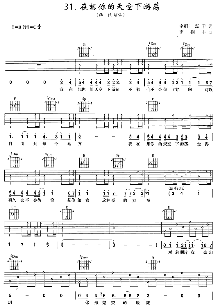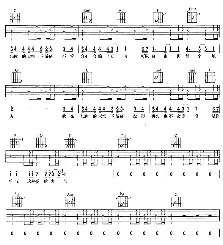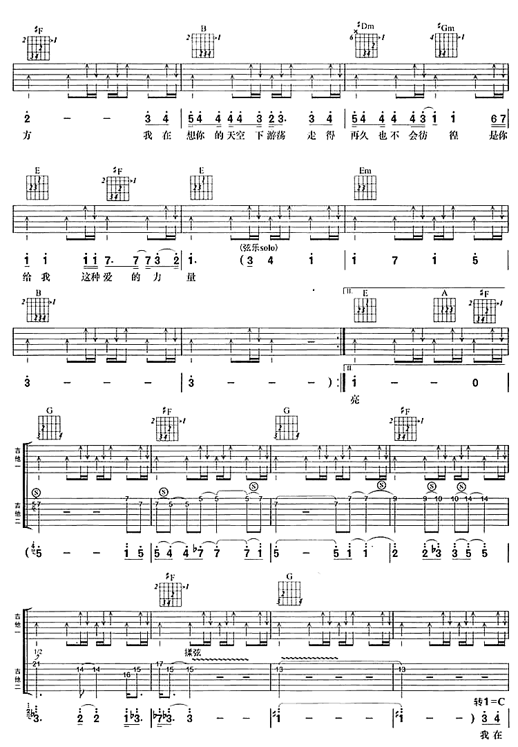 当前位置:琴谱网>吉他弹唱>在想你的天空下游荡