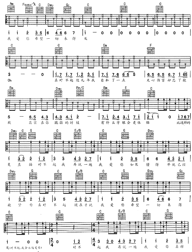 现在才说我爱你吉他谱 - 吉他弹唱谱