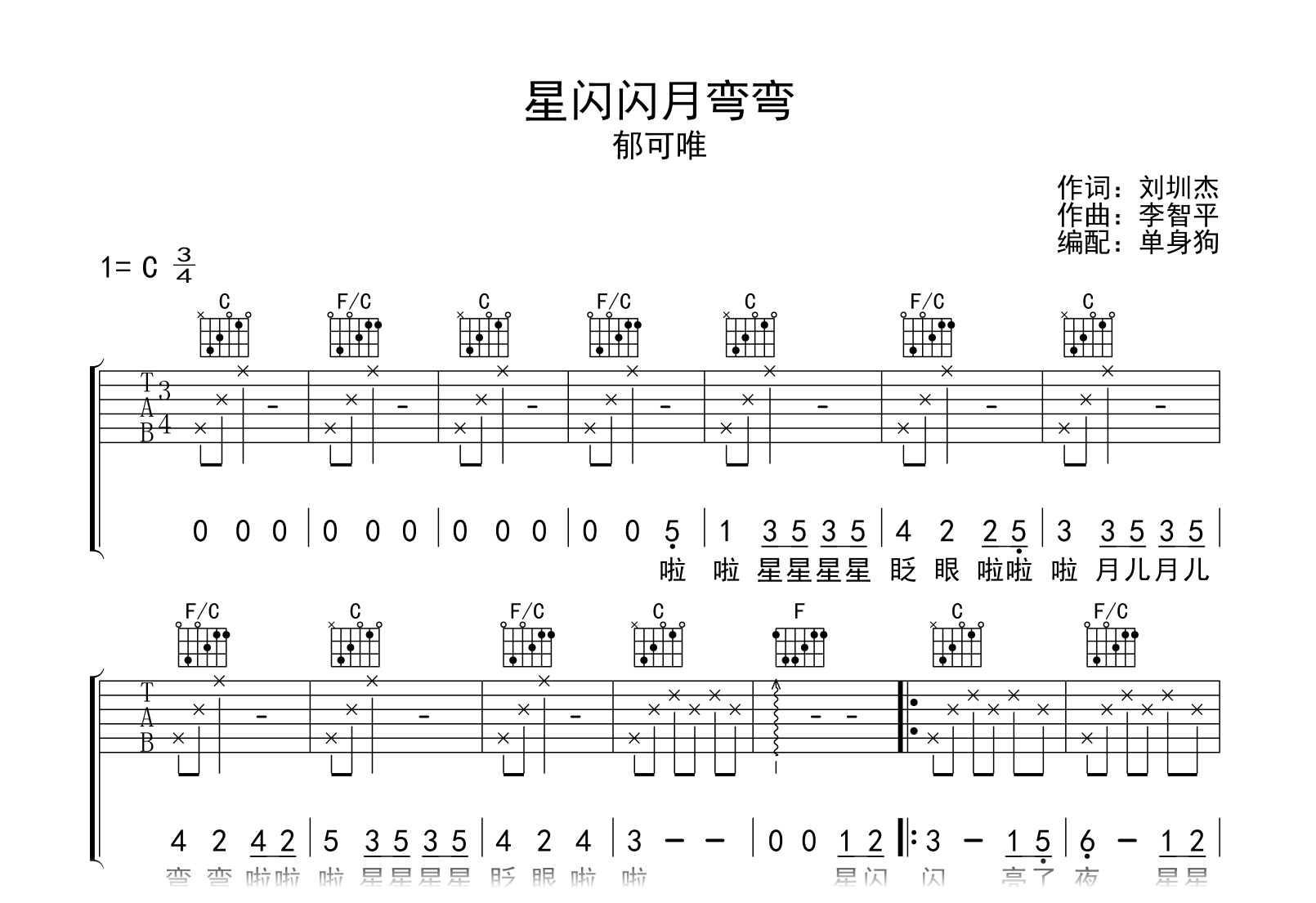 星闪闪月弯弯吉他谱 - 郁可唯 - C调吉他弹唱谱