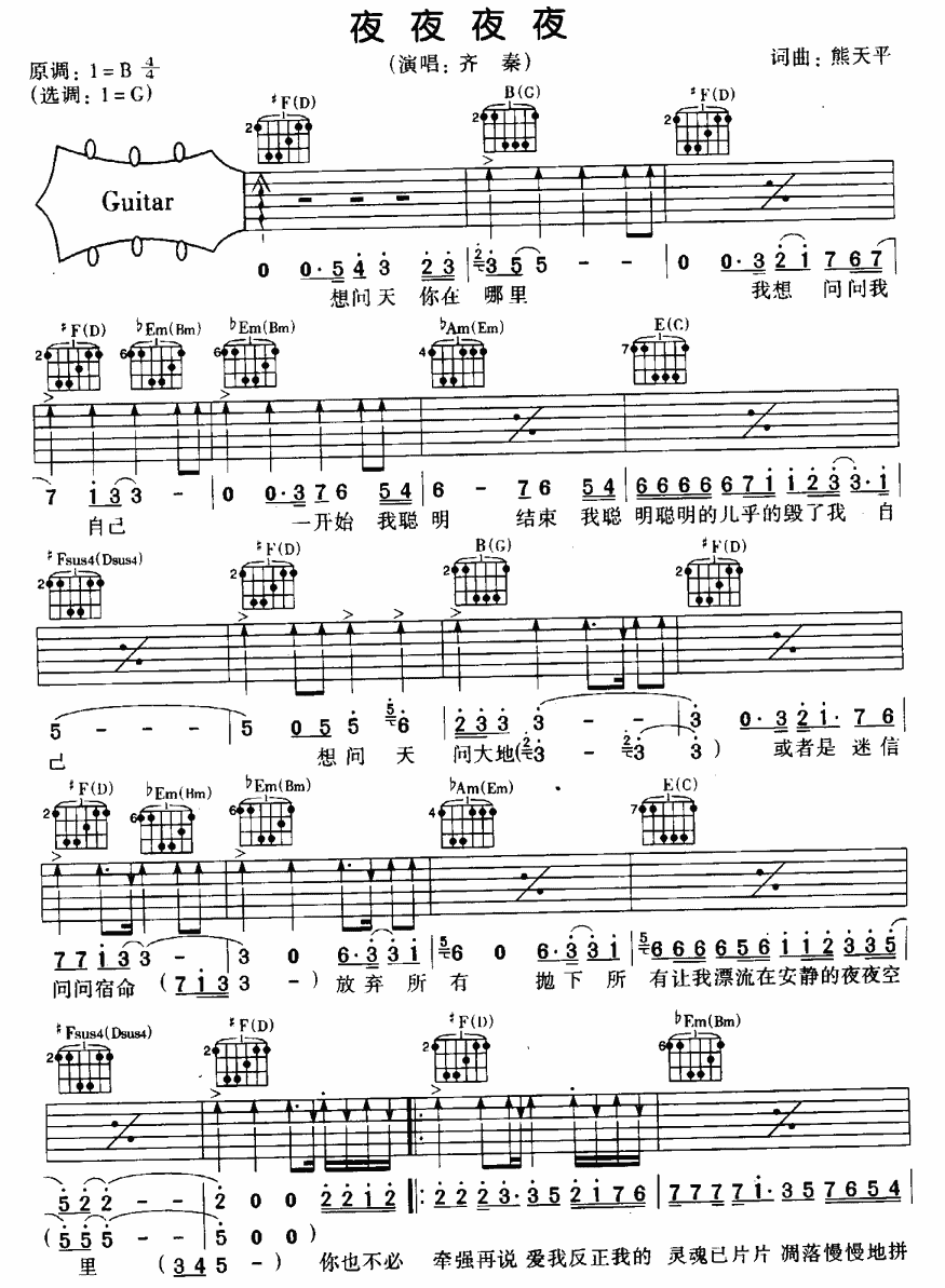夜夜夜夜吉他谱 - 夜夜夜夜 - 吉他弹唱谱