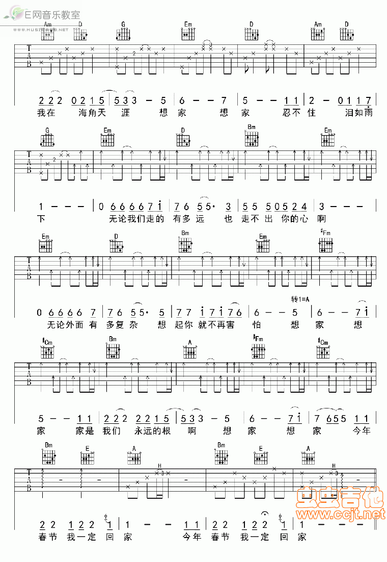 当前位置:琴谱网>吉他弹唱>想家 西单原版
