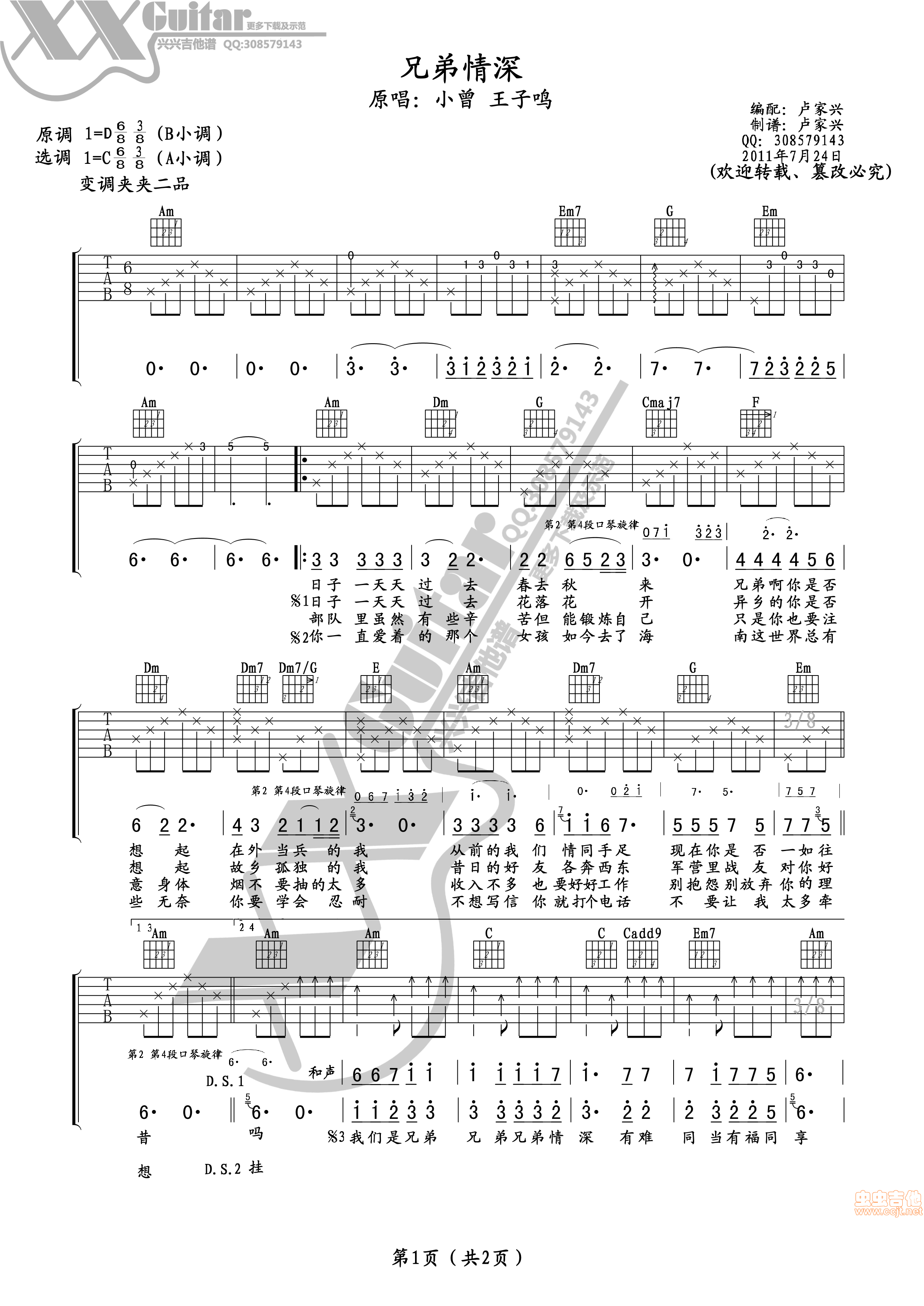 卢家兴 兄弟情深吉他谱 - 卢家兴 - 吉他弹唱谱