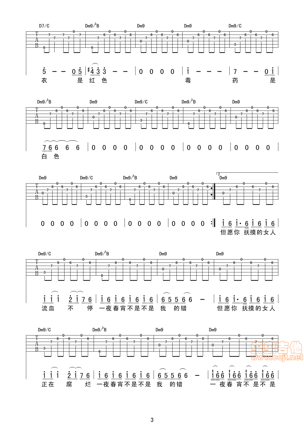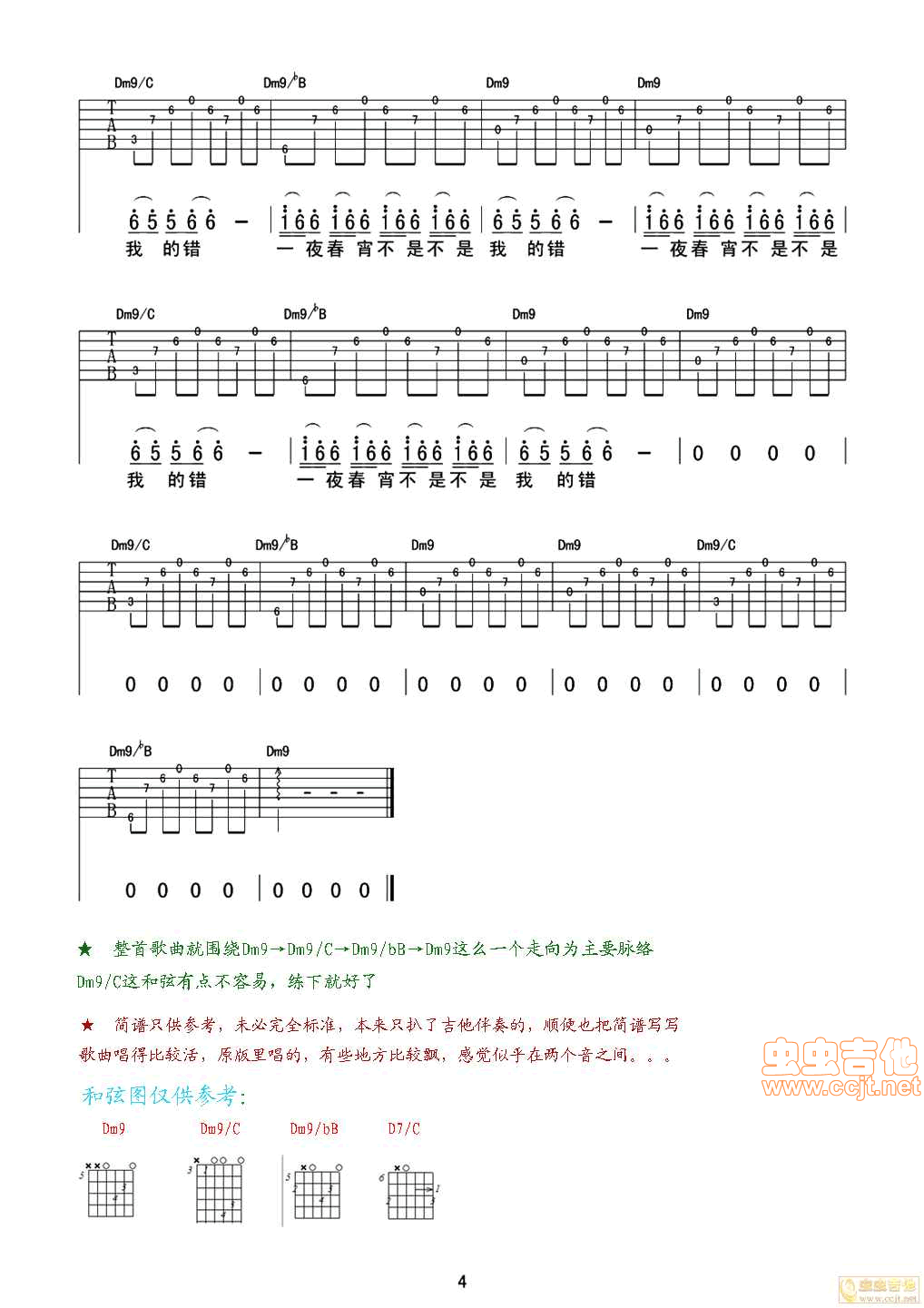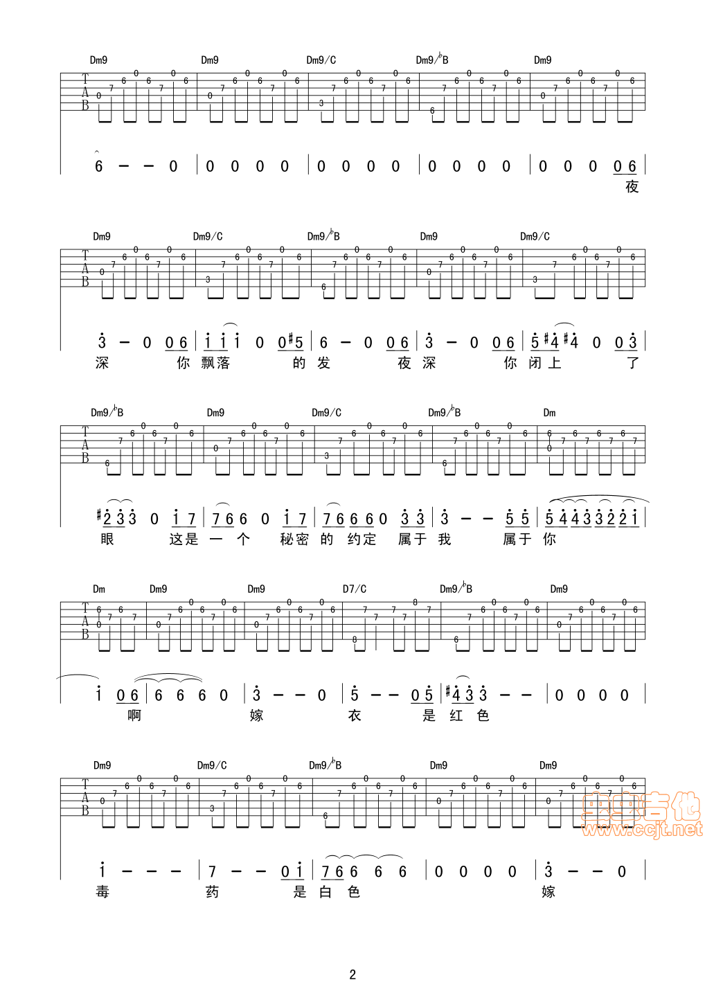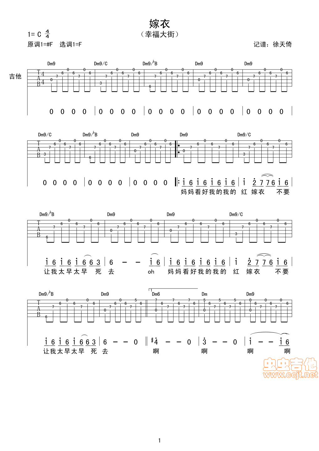 曲谱介绍: 《嫁衣》吉他弹唱谱,共有4张高清图谱。