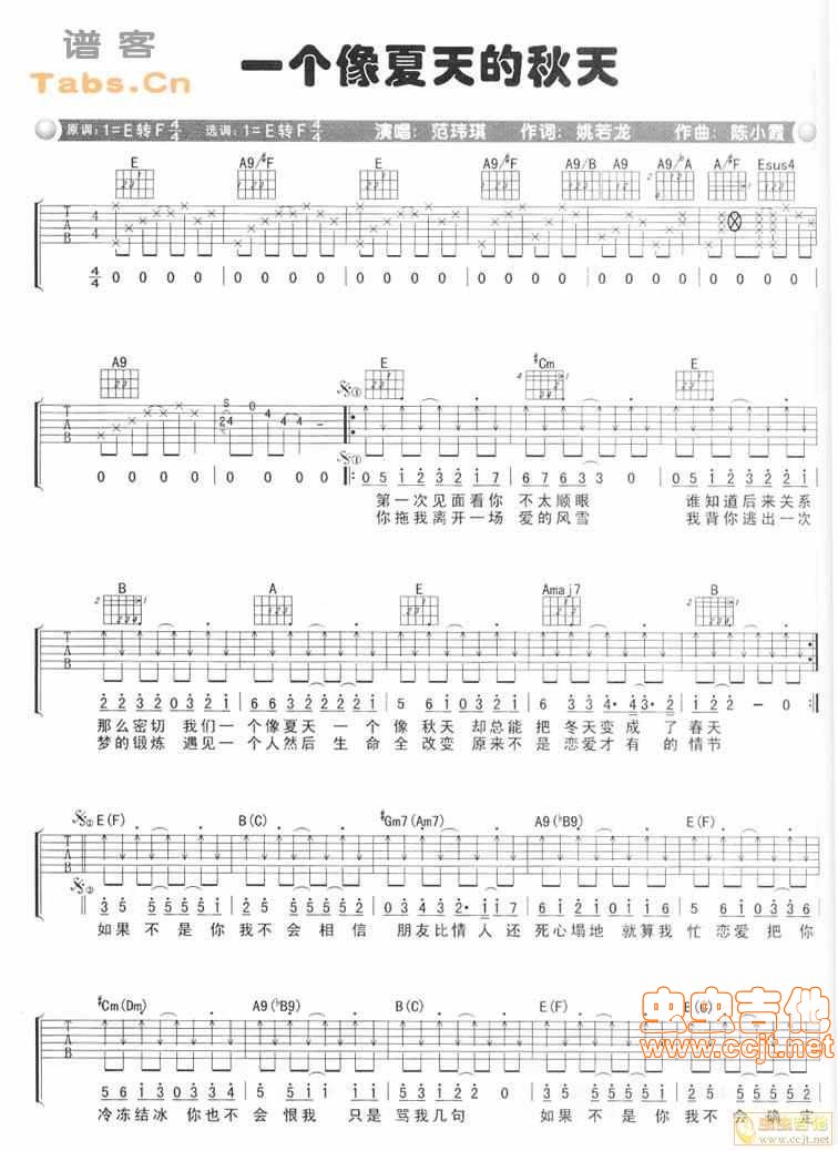 当前位置:琴谱网>吉他弹唱>一个像夏天的秋天