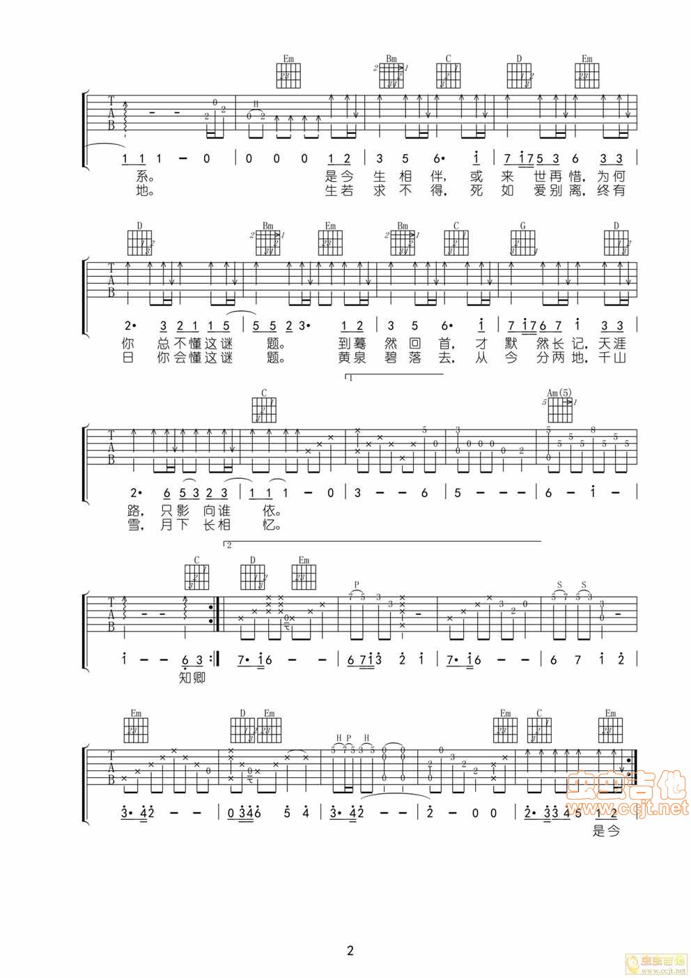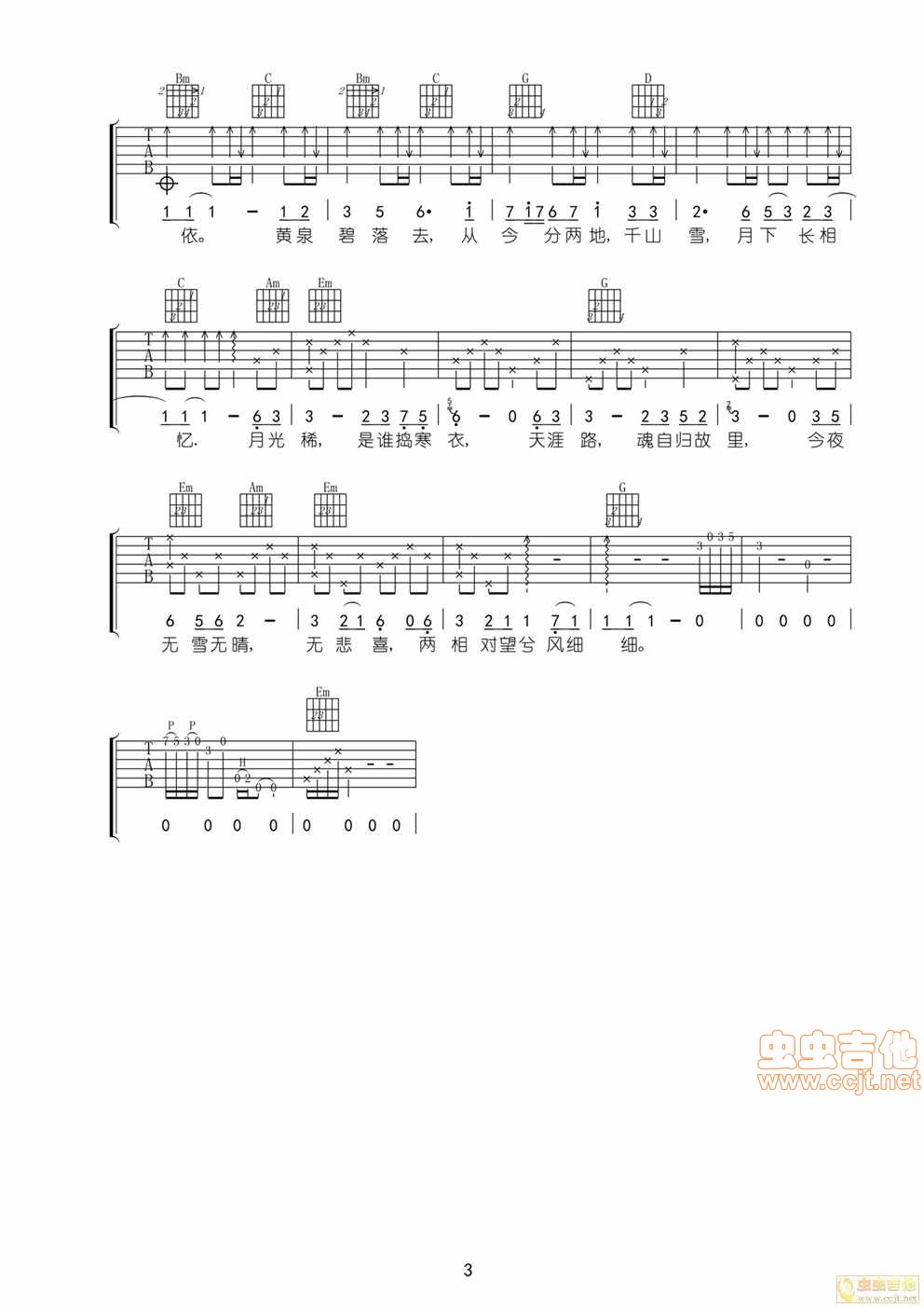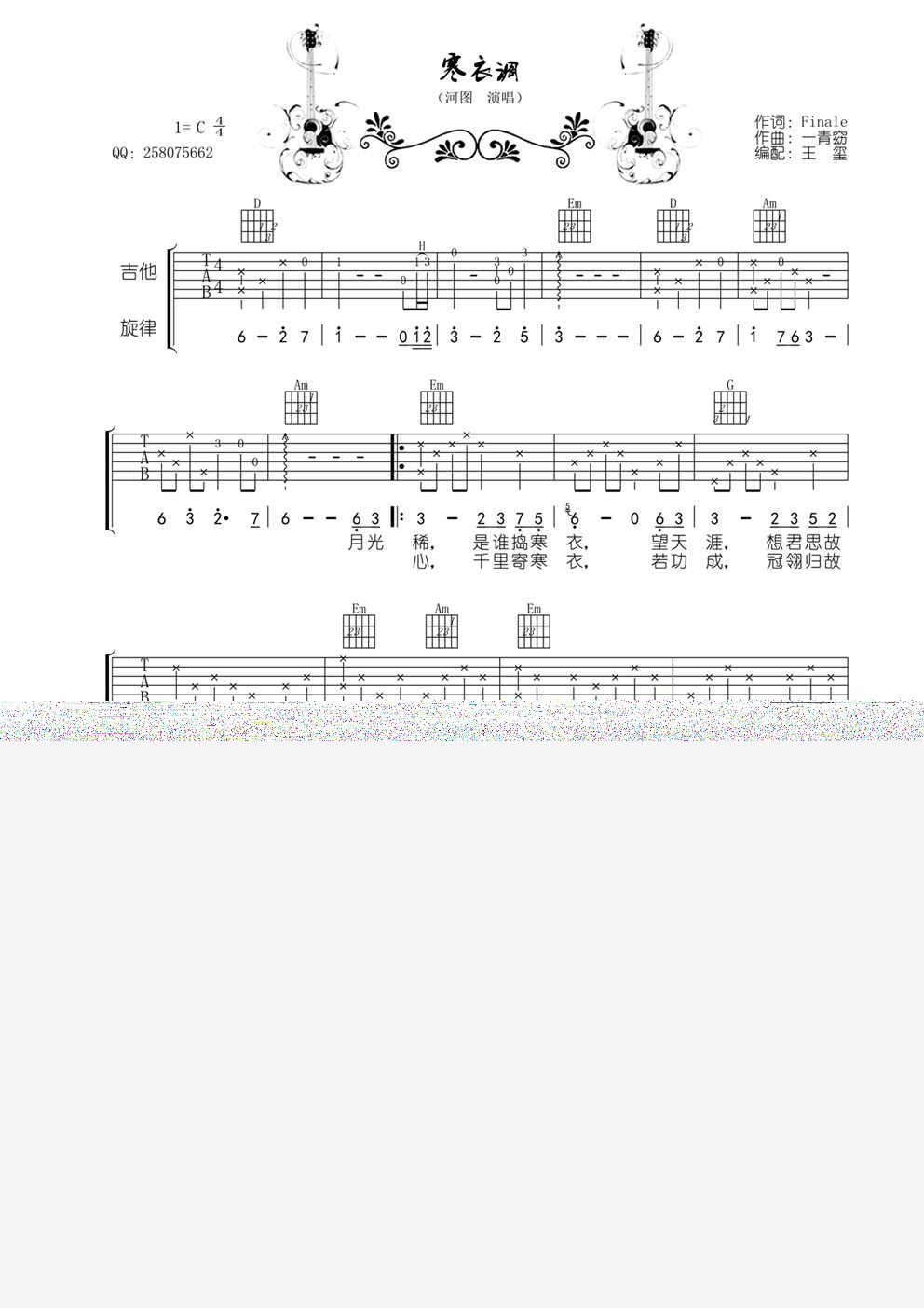 曲谱介绍: 《寒衣调》吉他弹唱谱,共有3张高清图谱。