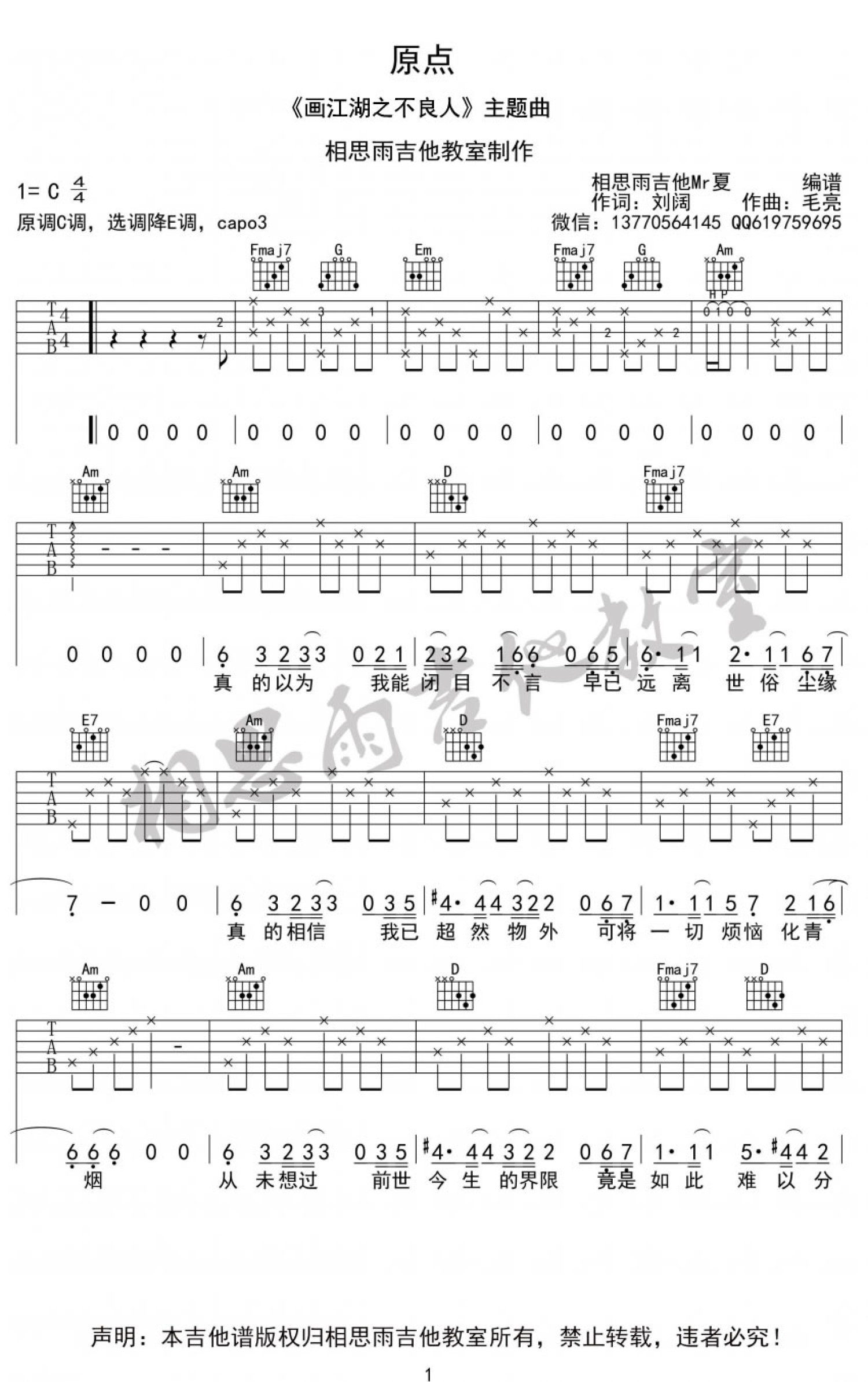 曲谱介绍: 原点吉他谱,西单女孩任月丽演唱,歌曲是动画片《画江湖之不良人》主题曲,原点吉他弹唱谱,C调,变调夹夹三品,选调降E调。一首好听的歌曲牵起了很多!一个默默无闻在背后爱你的人。一段刻骨铭心的爱恋,值得聆听的歌。一草一木一红颜、此生足矣。五年前西单女孩任月丽《天使的翅膀》网上走红,由此登上春晚舞台,家喻户晓;五年后她又重回西单地铁仍旧自弹自唱那首凄婉歌曲,令人遐想万千。“在滚滚红尘的世间,一如既往孤独相伴,万千纷扰与我何干?”