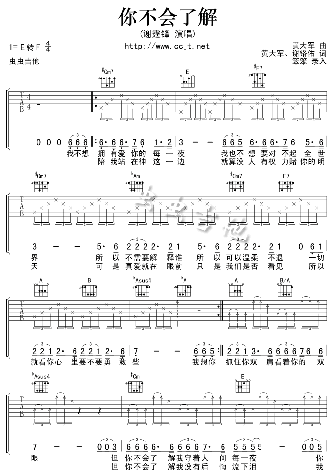 你不会了解吉他谱 - 吉他弹唱谱