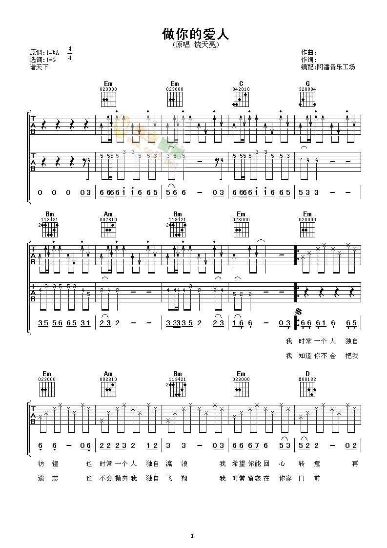 当前位置:琴谱网>吉他弹唱>做你的爱人