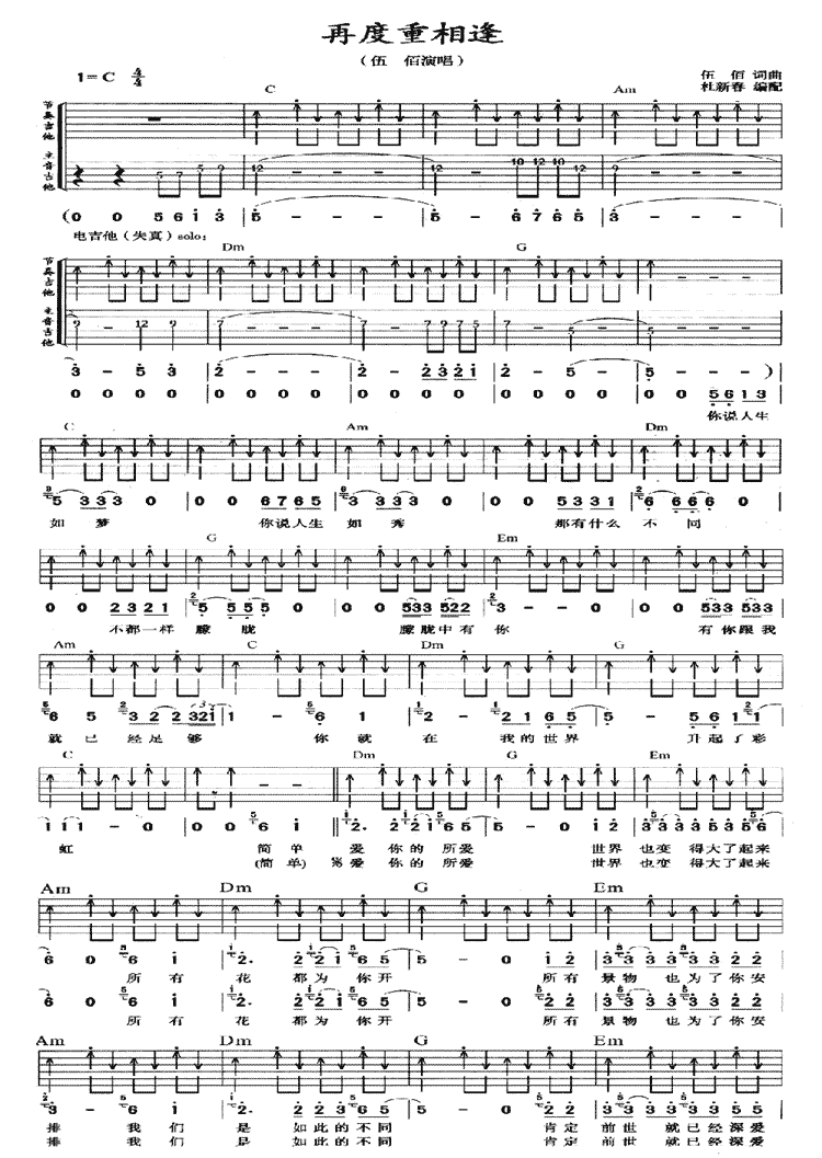 再度重相逢吉他谱 - 吉他弹唱谱