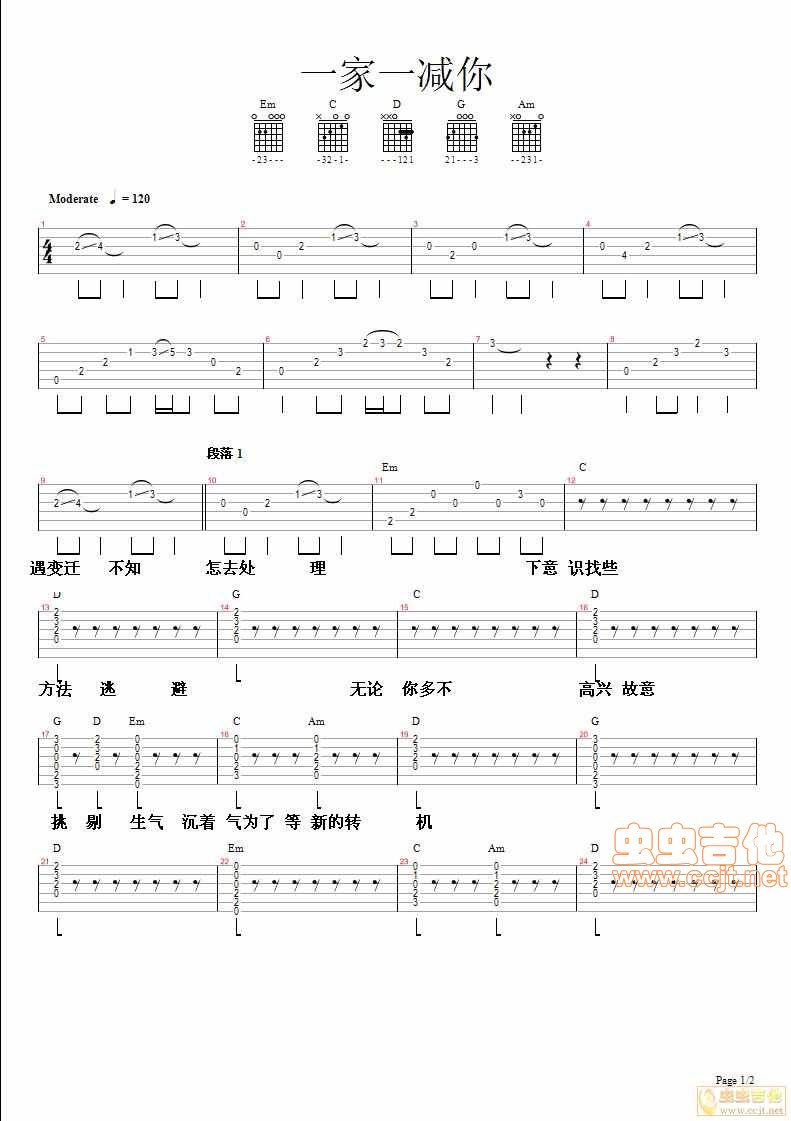当前位置:琴谱网>吉他弹唱>一家一减你 邓健泓版