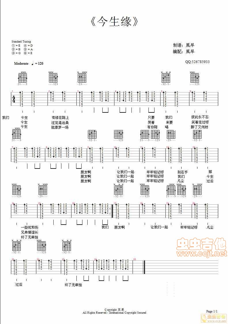 今生缘吉他谱 - 重新编排 - 吉他弹唱谱