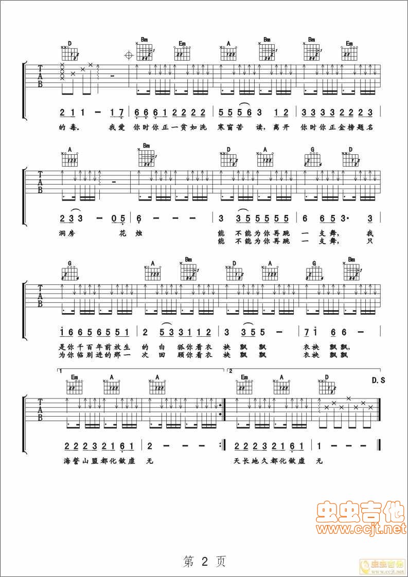 曲谱介绍: 白狐《白狐》吉他弹唱谱,共有2张高清图谱,免翻页排版设计。
