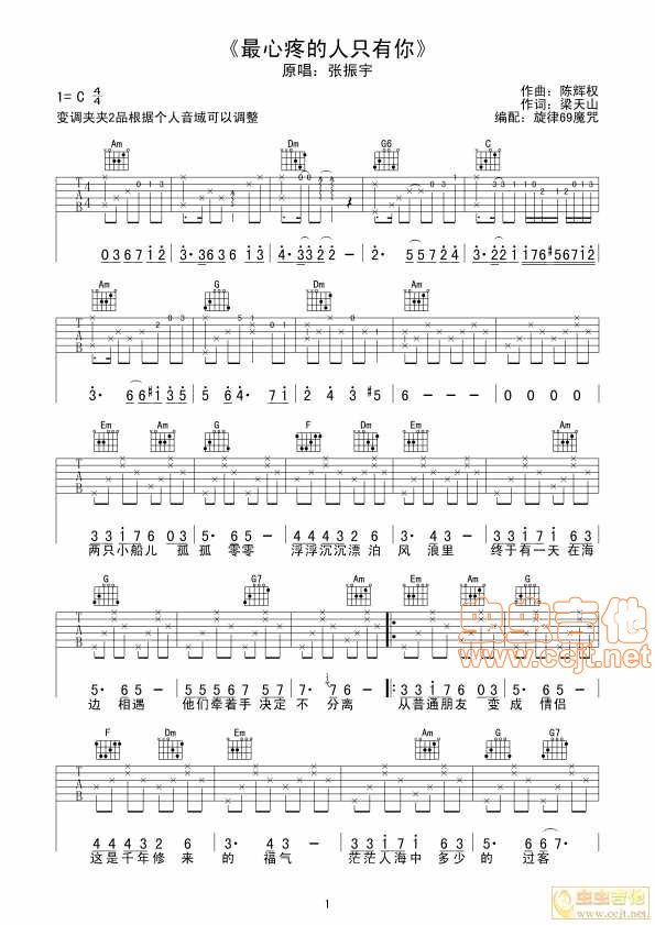曲谱介绍: 《最心疼的人只有你》吉他弹唱谱,共有3张高清图谱。