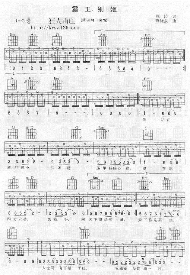 当前位置:琴谱网>吉他弹唱>霸王别姬