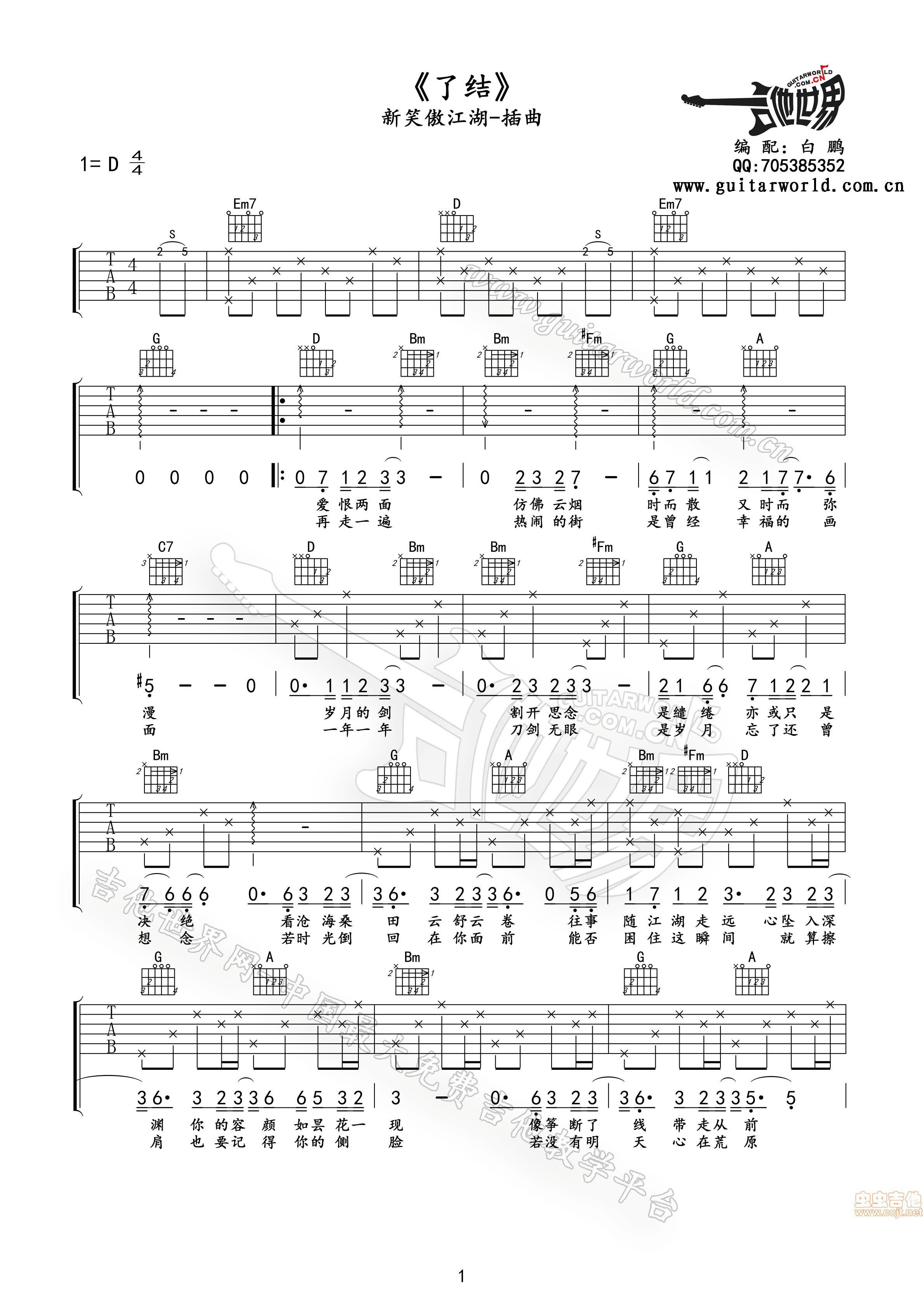 当前位置:琴谱网>吉他弹唱>了结