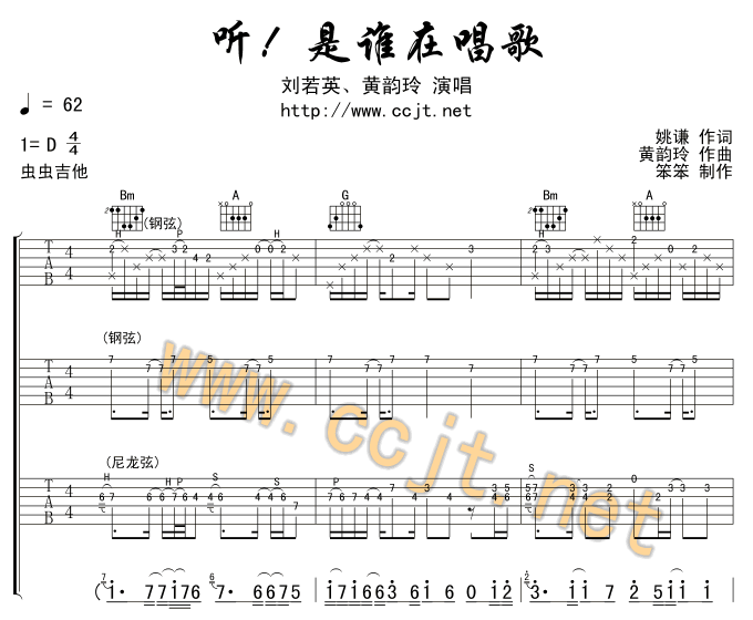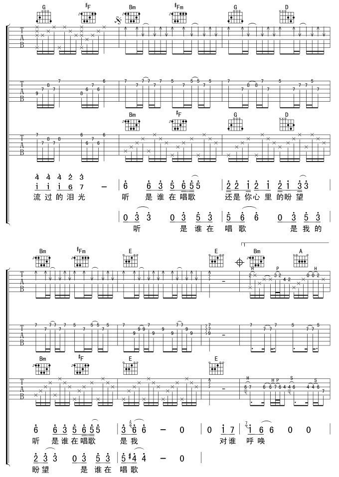 听!是谁在唱歌吉他谱 - 吉他弹唱谱